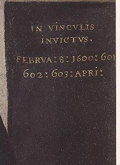 This is the ‘contrite’ image Southampton now wishes to project to King James in the ‘wooing portrait’ he sends to him. The inscription, written above the dates of his incarceration, reads: