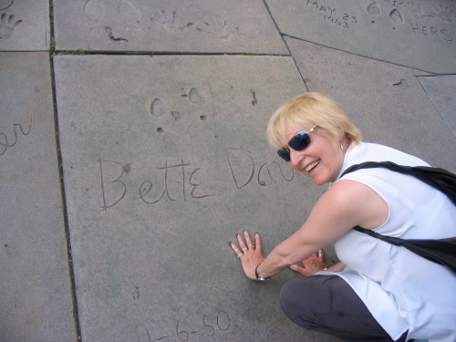 The photo showed Maggie outside Grauman’s Theatre in Los Angeles. She was putting her hands into a cast of Bettie Davies’s handprints….