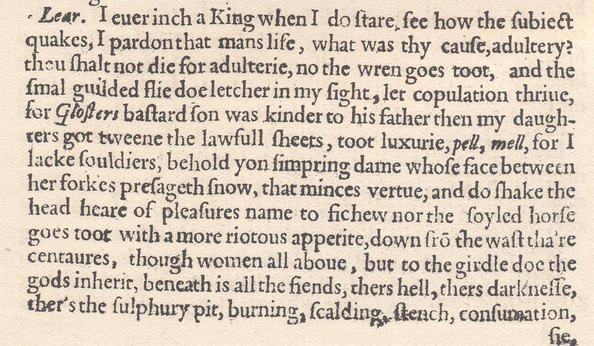 The stenographer of the 1608 Quarto version of Lear, it is true, DID sometimes mishear the words the actors were saying….