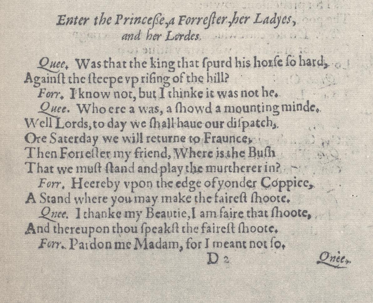 ….Enter the Princesse of Fraunce, with three attending Ladies and three Lordes….