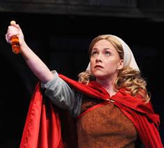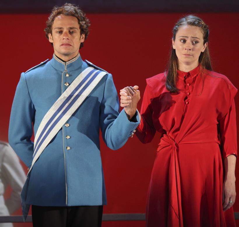 Ricky Sharpe as Feste and Karen Gledhill as Viola/Caesario in Stewart Trotter’s production of ‘Twelfth Night’ at the Northcott Theatre.